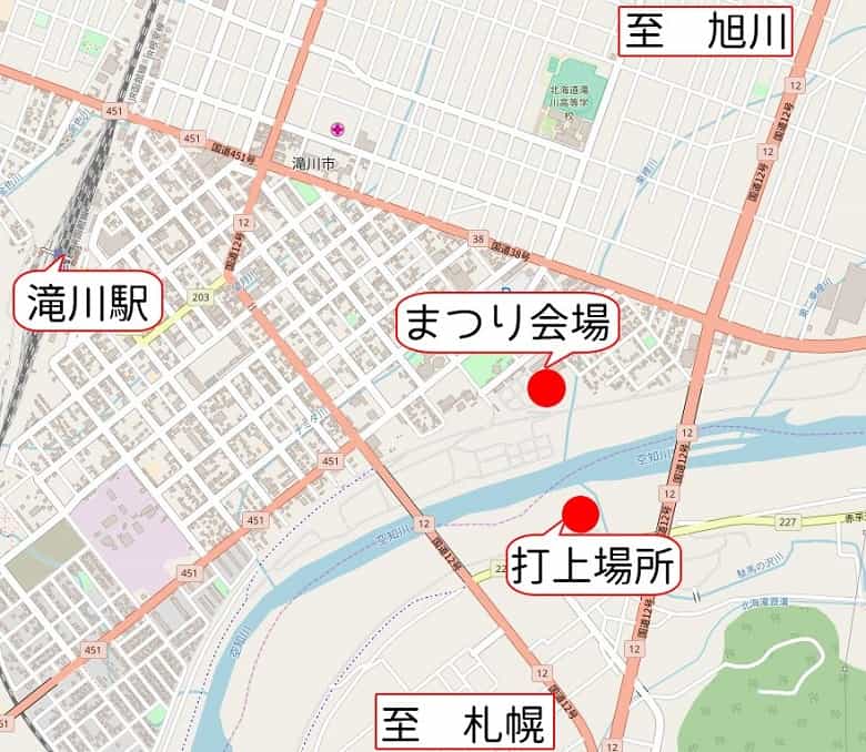 高速道利用(約1時間14分)道央道でささっと北上して炊き方ICで降りるとお祭り会場まであと少しです!