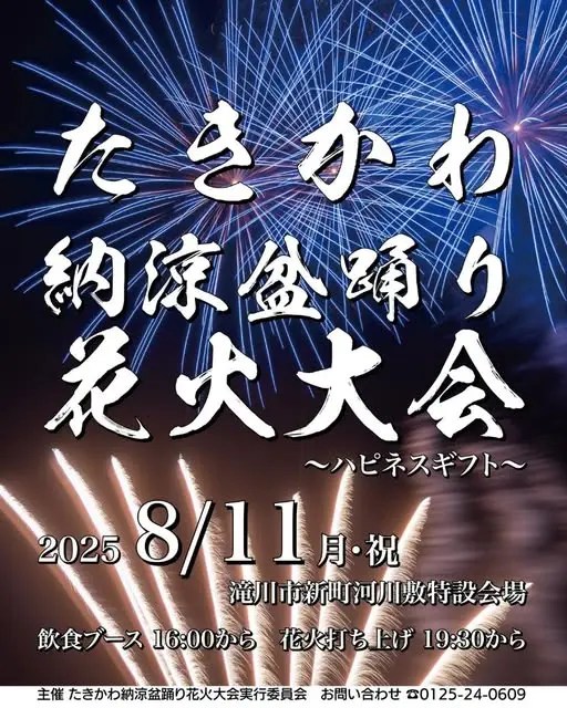 - 問合せ:たきかわ納涼盆踊り花火大会実行委員会 0125-24-0609