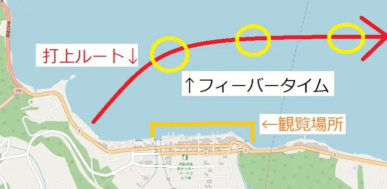 今回は「駐車場、打上舟が通るルート、フィーバータイムの位置、よく見えるポイント」を紹介します.