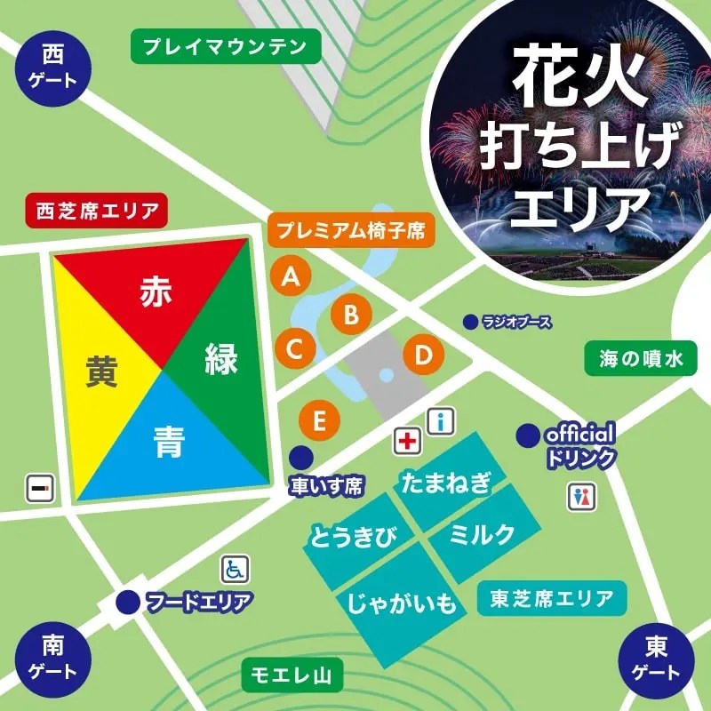 モエレ沼芸術花火は有料です。無料ではありませんので、事前に観覧チケットをご購入し、必ず会場にチケットを持参してご来場ください。チケットをお持ちでない方は公園内に入場することはできません。また、当日券の販売は予定していませんのでご了承ください。
