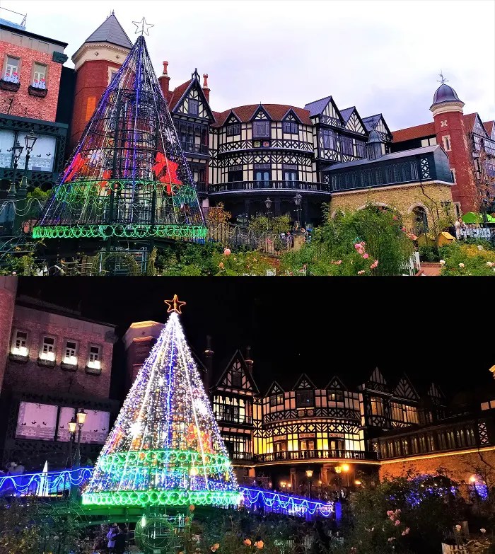 ①中庭の中心に10mの巨大なクリスマスツリー
