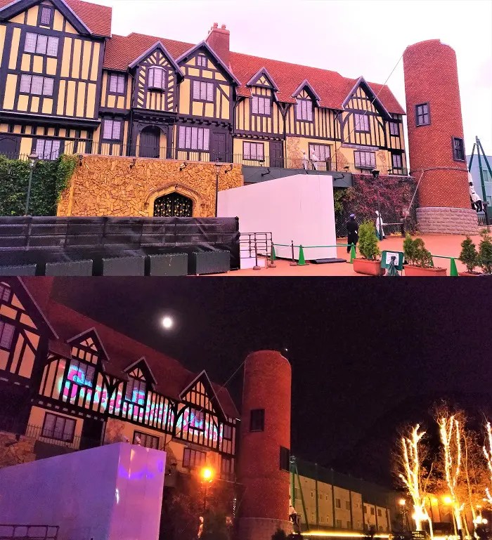 定時にプロジェクションマッピングのショーを行うとかの見世物は無いようです。