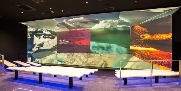 流氷幻想シアターは上下左右正面と大迫力の5面シアターは総インチ数400インチあり視界全体に広がります。