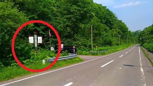 登山口は幌別ダムの路を登っていくと、左側にカムイヌプリの看板があります。(割と早めに出てきます。)
