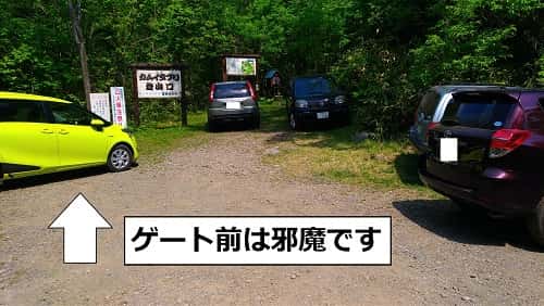 駐車場にあるゲート前は車が通るので駐車しないようにしましょう。(私が下山したときにゲートの向こうから来た人が出れなくて困ってましが)