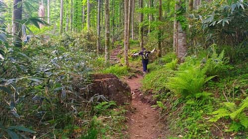 最初は緩い道から始まります。緑豊かな登山道が続きます。