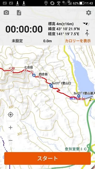 因みにカムイヌプリは以下のような画面になります。(地図の拡大縮小も思いのまま)