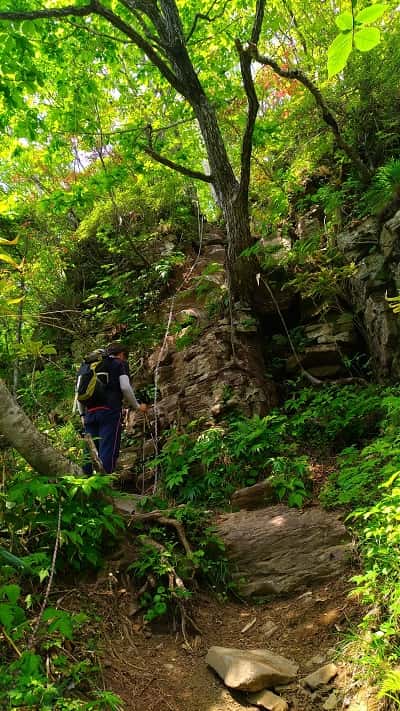 途中に1カ所、崖を登るところがあります。垂直に登っていくので険しいですが怖くて足が震えるようならやめておくのも1つの手段です。