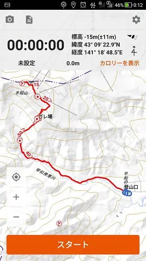 手稲山はYAMAPで平和の滝コースしか入っていませんでした。