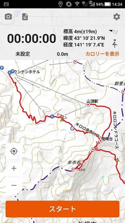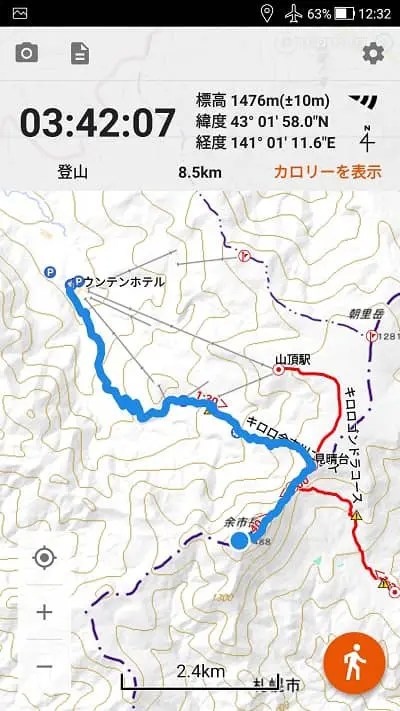 因みに余市岳は以下のような画面になります。(地図の拡大縮小も思いのまま)