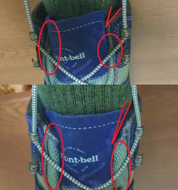 モンベルさん曰く、「タンが脛に当たる。」という顧客の声を聴き、歩くときに邪魔にならないように変更したようです。