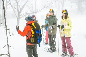 行きは雪上車で山を駆け上り、帰りはスノーシュートレッキングで下山。雪上車もスノーシューもどちらも楽しみたい方におすすめ。